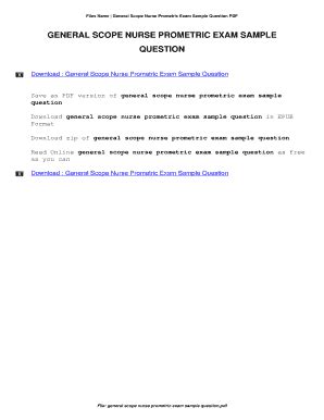 Read Online GENERAL SCOPE NURSE PROMETRIC EXAM SAMPLE QUESTION Hardcover
